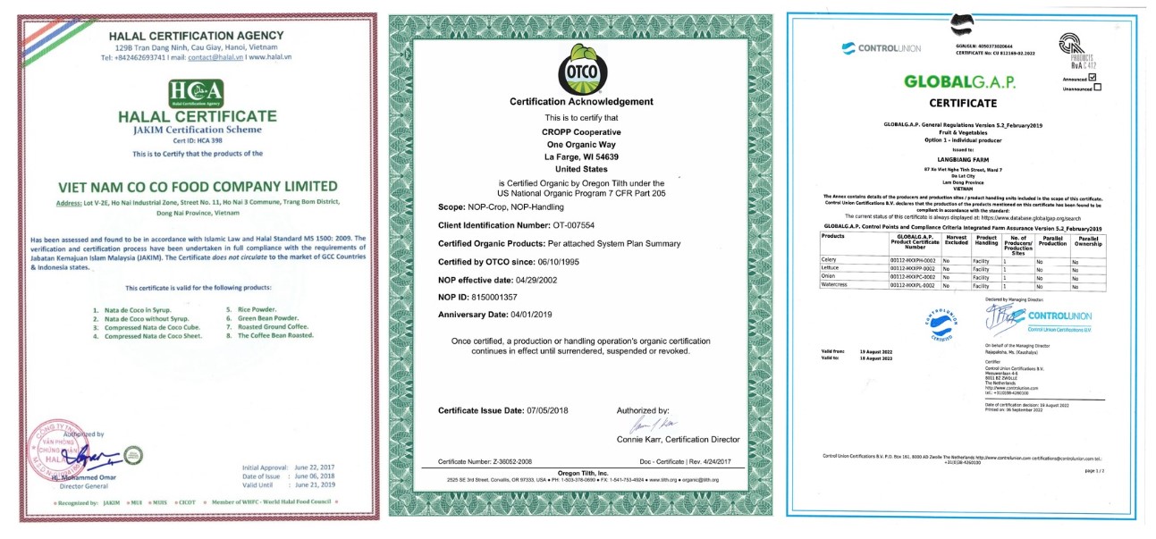 Ngoài ra, một số thị trường đặc biệt như Mỹ, EU, Nhật Bản còn yêu cầu thêm chứng nhận GlobalGAP, HACCP hoặc Organic.