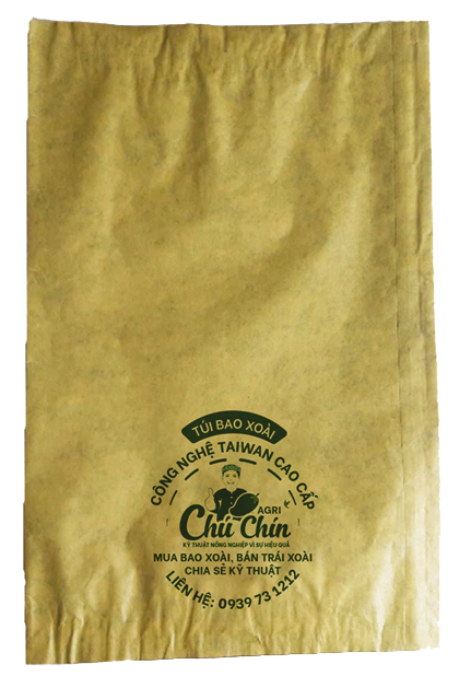 Túi giấy 2 lớp, cách ly trái xoài với ánh sáng mặt trời nên cho ra quả xoài màu vàng.