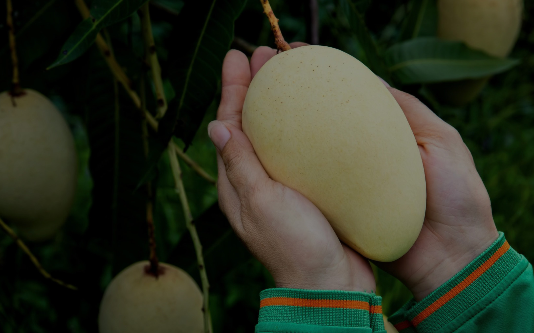 - Trái xoài cát chu non bắt đầu được bao trái để tránh côn trùng, sâu bệnh tấn công và giữ được mẫu mã bắt mắt từ lúc trái bằng ngón tay cái.